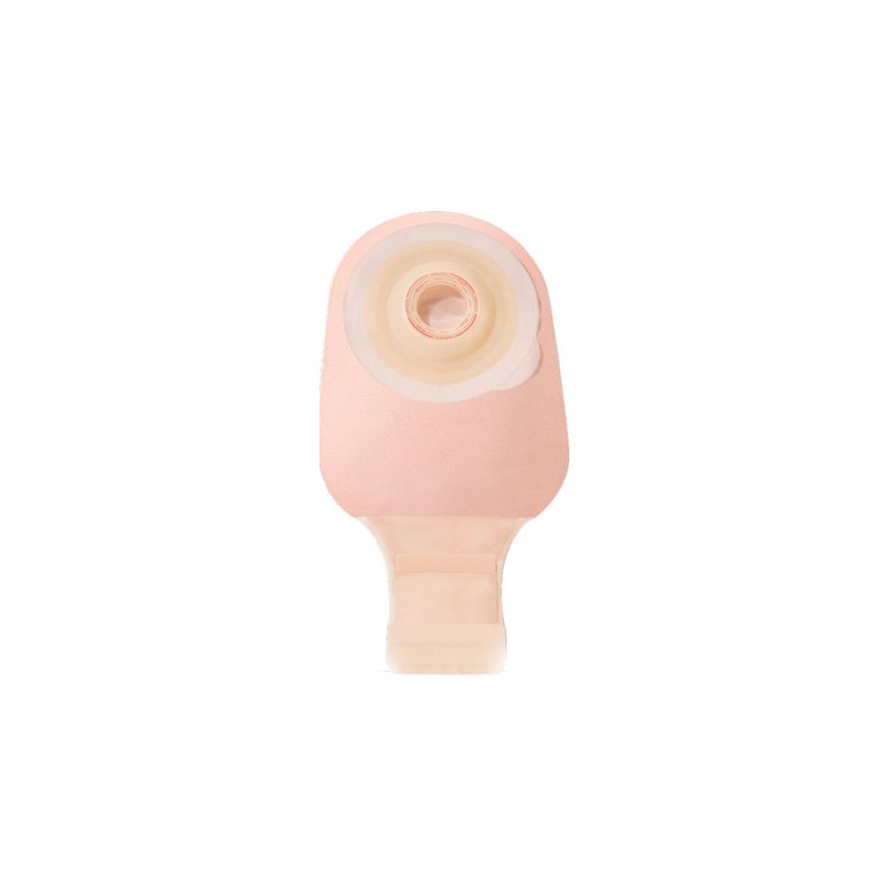 Bolsa drenable convexa de una pieza que se usa para colostomías o ileostomías. La barrera protectora de piel y la bolsa drenable forman una unidad. Está diseñada para un solo uso. La bolsa consiste en una película de cinco capas coextruidas a prueba de olores, poco ruido transparente y opaca con una cubierta suave en ambos lados. Una ventana en el tejido en el lado exterior permite la inspección de la estoma. Tiene un filtro de carbón con cierre de doble bloqueo con cinta de seta, se proporciona un clip de cierre opcional. La pestaña lateral del cuerpo contiene una barrera protectora de piel convexa con una abertura para la estoma.El reborde convexo tiene profundidadque proporciona el apoyo adicional necesario para ayudar al usuario a sentirse seguro y cómodo