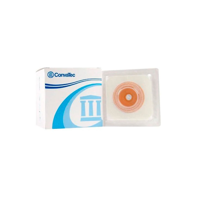 Barrera protectora cutánea plana con un disco de hidrocoloide adhesivo enmarcado con una cinta adhesiva cuadrada. El disco de hidrocoloide es trilaminado: la superficie adhesiva en contacto con la piel está protegida con una placa de silicón, la capa externa cuenta con Durahesive™ que brinda resistencia a efluentes agresivos.