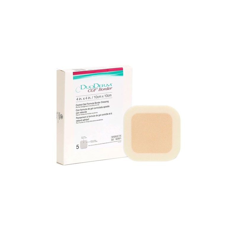 Apósito estéril con matriz elastomérica compuesto por una película interna de tres hidrocoloides (gelatina, pectina y carboximetilcelulosa sódica), poliisobutileno y polímeros elastoméricos. La película externa está compuesta por espuma de poliuretano. Adhesivo hipoalergénico en los bordes para fijación en áreas difíciles (zona sacra, talones y codos).