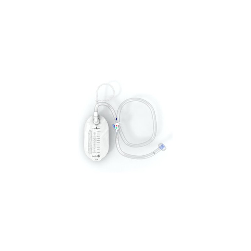 Flexi- Seal® SIGNAL ™FMS consta de un catéter de silicona, una jeringa y una bolsa de recolección. En un extremo, el catéter de silicona suave tiene un globo de retención que se inserta en el recto. En el extremo opuesto, el catéter tiene un conector para unir la bolsa de recolección.